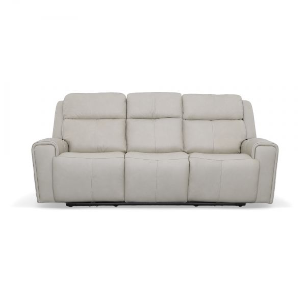 Make your living room the place to be with the comfortable and spacious Barnett power reclining sofa with power headrests and power lumbar. The whole family can relax together and enjoy a feeling of weightlessness with the loveseat’s Zero Gravity recline technology. Easy-to-access power controls on both sides of the sofa allow sitters to independently adjust the recline, headrests and lumbar to find the right level of support for their bodies and moods. Conveniently charge devices without ever needing to get up with a USB port in the power control, and keep remotes close by with handy side pockets. Enjoy ergonomic design details, including generously scaled, contoured seats and waterfall chaise pads that take pressure off the legs and back. Wide track arms with durable top-stitching and attractive welt trim will make this reclining sofa a stylish centerpiece in your home. Upholstered in our premium top-grain leather, this sofa will look good for years to come.
