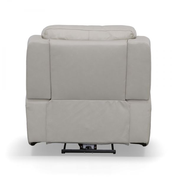Recline into relaxation with the Barnett power recliner with power headrest and lumbar. As you lounge, our Zero Gravity recline technology cradles your body and gives you a feeling of weightlessness. Dial in your perfect level of comfort with a power control that independently adjusts the recline, headrest and lumbar for extra back support. For your convenience, the recliner features a USB charging port built into the power control to keep devices charged and a handy side pocket for storing remotes. A waterfall chaise takes pressure off tired legs, while a wide, contoured seat allows you to sit comfortably for as long as you like. Our patented Flexsteel DualFlex Spring System™ provides a pleasing mix of firmness and flexibility as you sit. And thoughtful enhancements, including wide track arms with durable top-stitching and attractive welt trim, give this recliner an elevated look. Finished in our premium top-grain leather, this recliner is sure to look good for years to come.