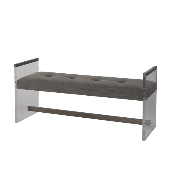 Punctuate bed frames with the forward-thinking Modern Bed Bench, an overtly stylized piece built with a lush, button-tufted upholstery seat encased between acrylic ends and subtle metal caps. Siltstone gray finish