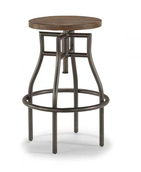 Case Good Options: Constructed from solid wood planks with a distressed reclaimed look. Hand-worked metal frame. Rustic brown finish. Seat adjusts from a height of 26" to 32".