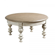 This Perfectly sized 40" round coffee table has turned legs and is just the right amount of casual that it fits any room decor. It is Finished in Sun Washed, Driftwood, Denim with a Light Stain. TheĀ