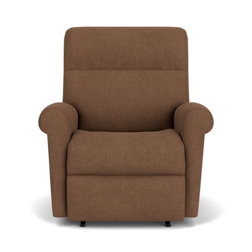 Davis features a rolled arm that slopes back for a sharp look, adding to its clean, tailored appeal. Slight contoured seating cradles you while the divided back cushion and fully padded footrest provide comfort for your tired feet. Rock back and forth while relaxing, or effortlessly recline at multiple angles from an upright to a fully reclined position.