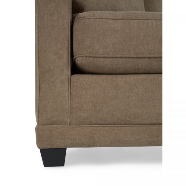 Kennedy is the sleek and casual loveseat that fits any size space. A combination of clean lines, narrow track arms, welt trim and decorative wood legs give it a classic, understated style that blends easily with any decor. Patented ComfortCore® cushions provide just the right amount of support for a long or short sit. Make it yours with your choice of fabrics and other available upgrades. Includes two 20” accent pillows. A matching ottoman is available separately.