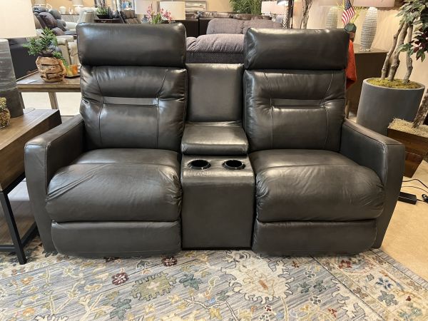 LENNON POWER WALL RECLINING LOVESEAT WITH POWER HEADRESTS AND CENTER CONSOLE IN TOP GRAIN LEATHER