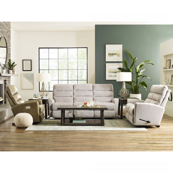 The Liam Power Rocking Recliner with Headrest and Lumbar offers total comfort, plus style! The adjustable back, chaise seat, headrest and lumbar relax you. A gentle rocking motion soothes. Fine lines and sleek flared add an updated look to the room. Available in hundreds of fabrics and leathers! Comes with La-Z-Boy's wireless remote upgrade!