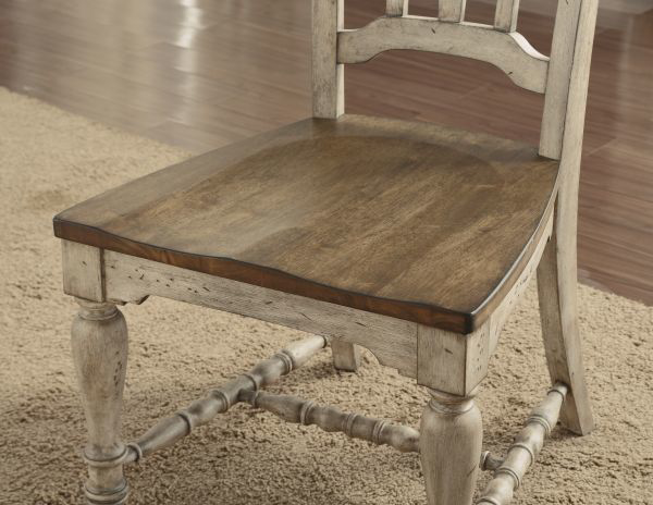 The Plymouth dining chair boasts a shabby chic design with an overall graywash finish. Accented by a dark seat and coordinating dark dining table and buffet tops, Plymouth is ideal for those who like a bit of vintage design in their modern lives. This chair features a panel back with a diamond-shaped detail, and is a perfect seating choice to complement the Plymouth rectangular dining table or round pedestal dining table.