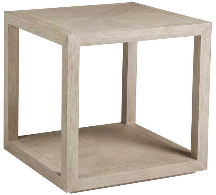 Contemporary designs crafted from Mahogany with wire brushed solids and veneers to create a four-way match pattern on the top and open shelf. The Bianco finish is a white wash over wood tone with hand wire brushing.Read More