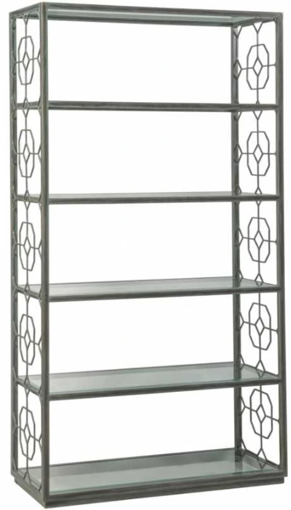 Hand-forged iron frame with six stationary, 1-inch beveled, tempered glass shelves. Shown in the St. Laurent finish, a rich natural iron tones with touches of light gesso and gold highlighting, but also available in all Artistica Metal Designs finishes.Read More