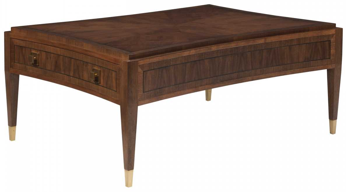 Traditional designs crafted from walnut and mahogany solids, flat-cut and figured walnut veneers in a four-way match pattern on top all finished in a bleached walnut. Two full-extension drawers include lost-wax cast solid brass hardware which complements the ferrules, both in an antiqued finish.Read More