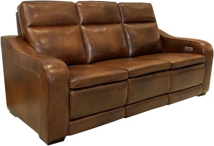 Triple power reclining sofa group with power recline, power headrest, and power lumber. The group features tucked pub back, sloped thickly padded wide radius track arms, plush pillow top pad over chaise seating with pocket coil springs, and wood legs.Read More
