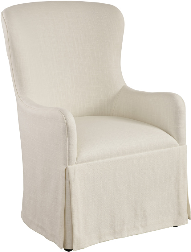 The casual elegance of the Aliso host chair is highlighted by the graceful curve of the barrel back and tailored look of the dressmaker skirt. The chair is standard with casters. The standard fabric is 2275-12 Cloud, which us a performance fabric with a soft hand in a linen-white coloration.Read More