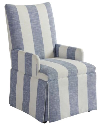 The Mackenzie arm and side chairs are the ultimate in stylish and comfortable dining room seating. The gentle concave back, contemporary English Arms, and dramatic dressmaker skirt make this piece a show-stopper in virtually any fabric combination. The chair is standard with brass casters on the legs for ease of movement.Read More
