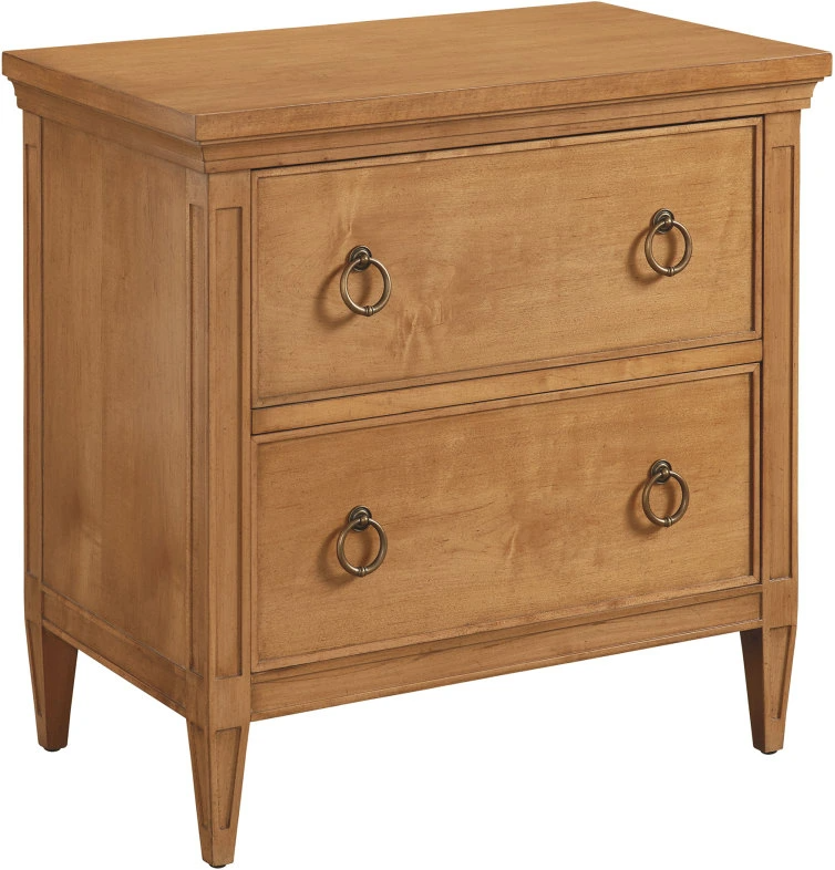 There are multiple bedside chests available, but this nightstand stands out with its two generous self-closing drawers for ample storage. The design is enhanced by elegant tapered legs and custom pendant hardware, offering both functionality and a touch of sophistication to complement any bedroom decor.Read More