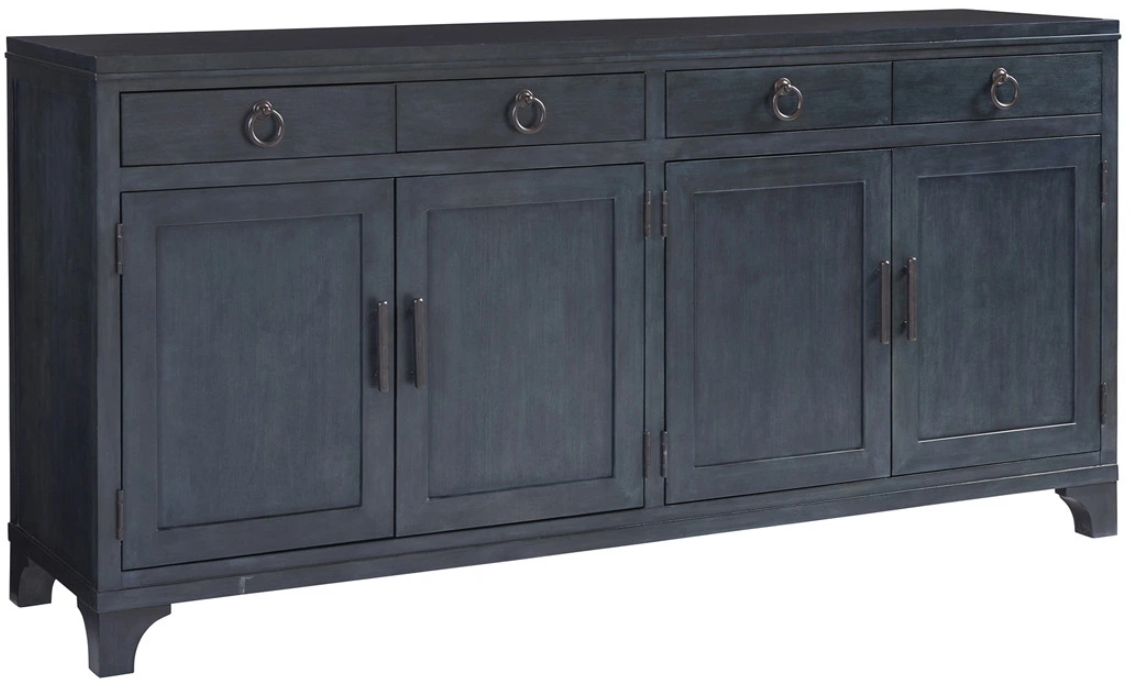 For those who never seem to have enough storage space, the 78-inch Bayside buffet is a stylish solution. Four full-extension self-closing drawers are felt lined, with one divided for silver. Behind each pair of doors are two large adjustable shelves.Read More