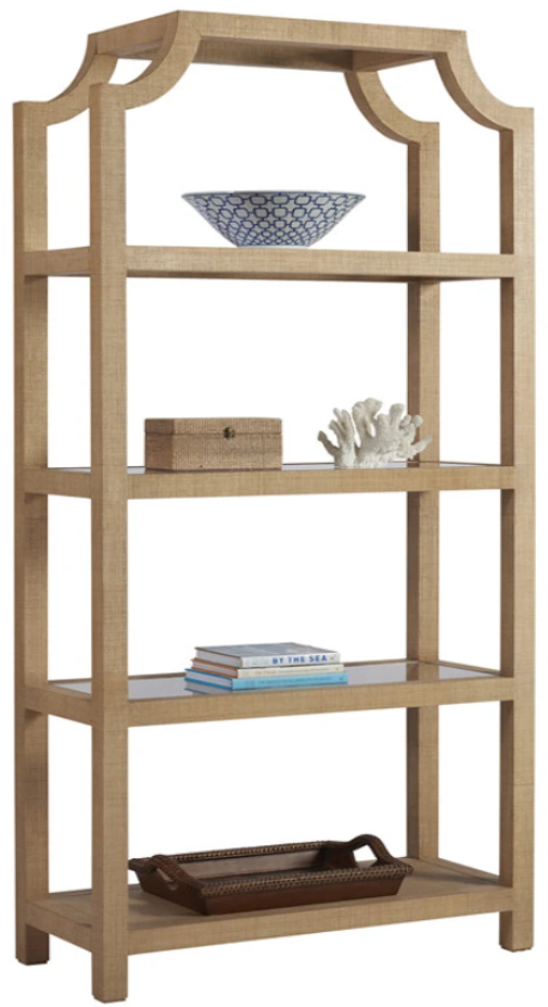 Entirely clad in raffia, the Beachcomber Etagere offers a remarkable look as a single unit or in pairs. The design features a stationary shelf at the base, three ultra-clear tempered glass inset shelves in the middle and an open top.Read More