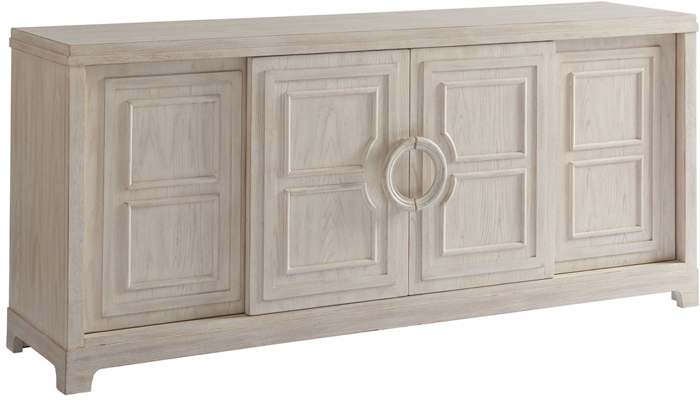 The 78-inch Leeward media console accommodates a full range of electronic components behind four sliding bypass doors which effectively conceal the entire interior of the piece. For those looking to showcase the furniture styling without sacrificing ready access to components, this silhouette offers an ideal design solution.Read More