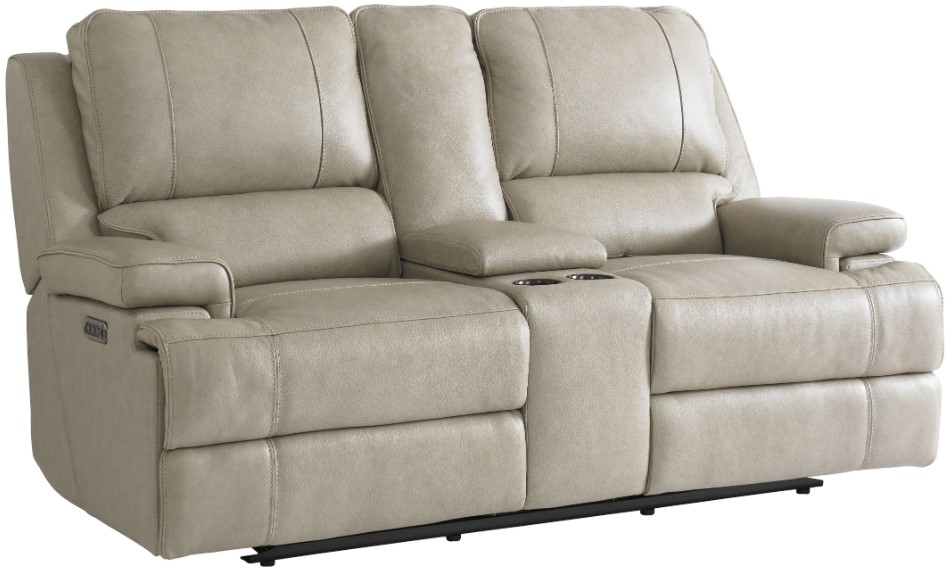 Modern styling with padded arms, a split pub back, power lumbar and features a lay-flat mechanism. Available in leather and vinyl match on out arms and out back. Each end seat of the sofa reclines while the center seat is stationary. Lower half of panel on outside back of motion items is secured.Read More