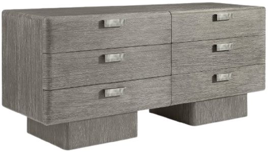 The Monolith dresser showcases perfect proportions that create a balance of modern and rustic styles. Two plinth bases support a bold case that is defined by rounded corners and the puma finish. Six soft-close drawers are highlighted by geometric cast aluminum hardware in graphite finish.Read More
