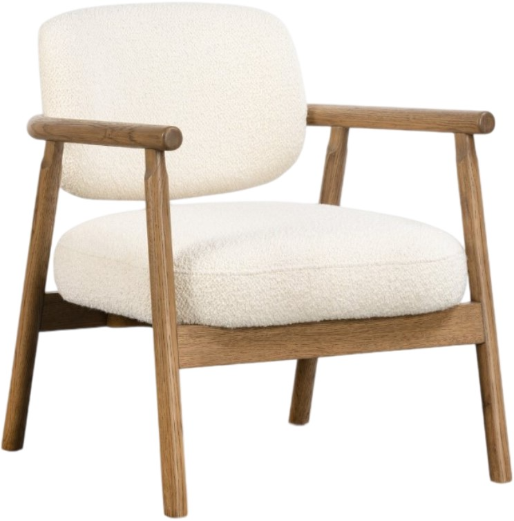 A simple stunner with a nod to the original schoolhouse chair. Ours features an airy solid oak, cradle-style frame with a beautiful back detail. Plush cushioning on seat and back are upholstered in a soft vintage-inspired fabric with boucle yarns throughout for added texture.Read More