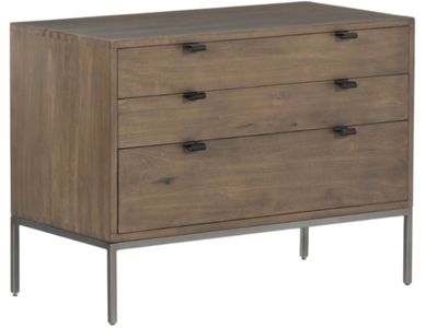Simple style, inspired by midcentury décor. Made from a auburn-finished poplar, a roomy three-drawer nightstand brings extra storage space to the bedside. Top-grain leather pulls add a textural finishing touch.Read More