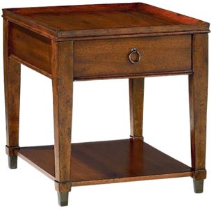 This Hammary® Sunset Valley Brown Rectangular End Table crafted of mahogany veneers and select hardwoods antique bronze hardware and ferrules in a rich Mahogany finish with distressing. Acute stylish elements in a rich, slightly rustic patina and a wealth of function create Sunset Valley. This collection is sure to fit many styles.Read More