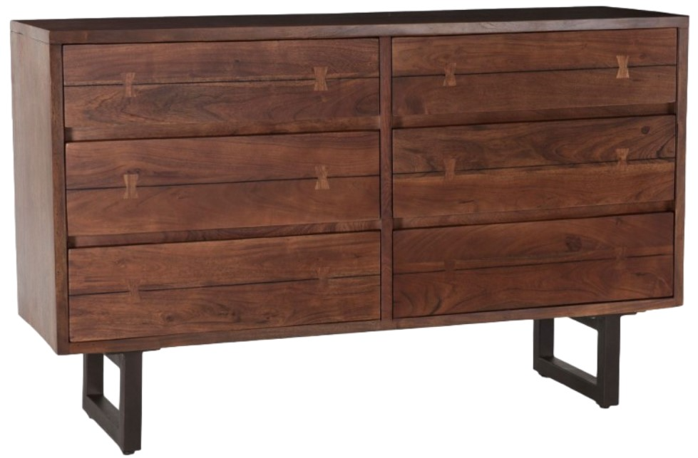 Faux live-edge designed drawers feature butterfly joint detailing, giving this piece a natural charm