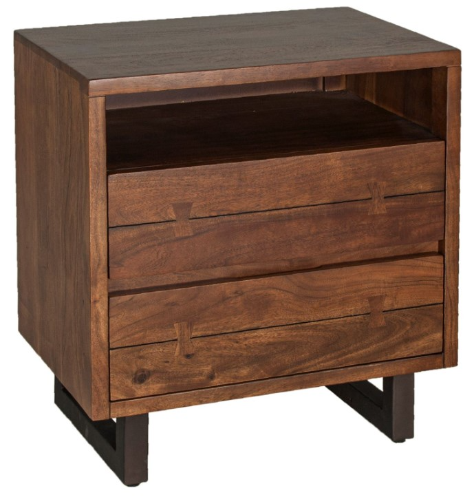 Faux live-edge designed drawers feature butterfly joint detailing, giving this piece a natural charm