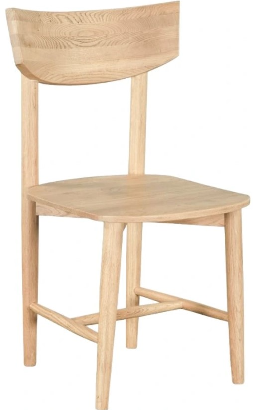 Home Trends & Design Calder Natural Oak Dining Chair is made from solid oak, offering strength and longevity. Its natural oak finish highlights the wood's grain, creating a warm, inviting feel. The chair provides comfortable seating, making it a functional addition to any dining space.Read More