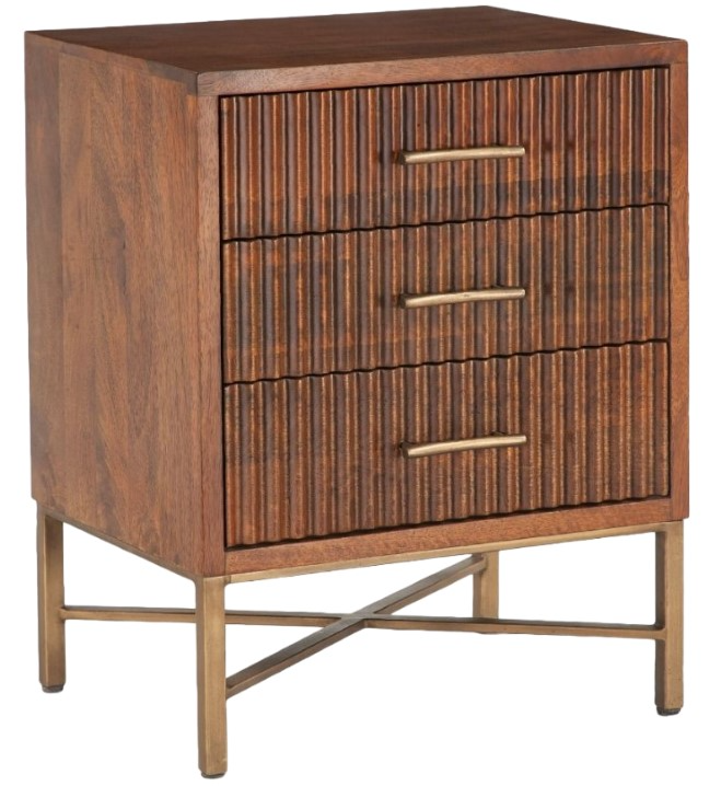 The Home Trends & Design Cosmopolitan Antique Brass/Honey Brown Nightstand combines solid wood construction with a warm honey brown finish and antique brass accents. It offers a convenient surface and storage drawer for keeping essentials close by, making it a practical addition to any bedroom space.Read More