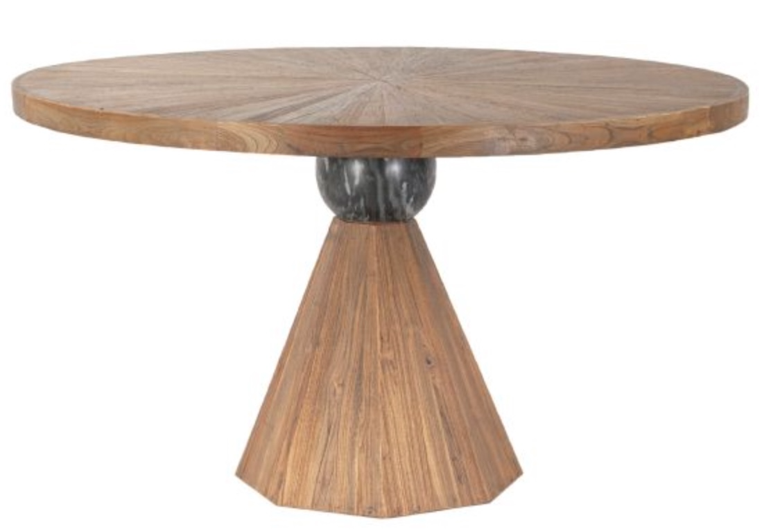 100% solid teak wood octagonal base featuring a marble pedestal