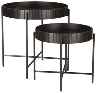 The Home Trends & Design Verbania Matte Black Nesting Table set features a sleek matte black finish with a minimalist design. Its versatile nesting style provides functional surface space and modern elegance to any room.Read More