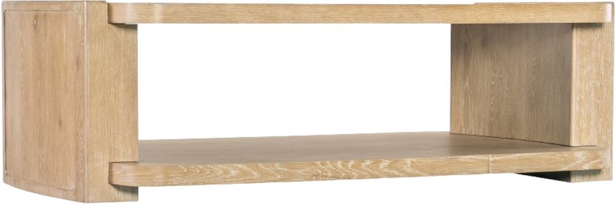The Retreat rectangle cocktail table has a tranquil personality with a modern twist. Simple, clean lines are in a rectangle shape with rounded corners and interlocking block-style legs. Crafted of oak veneers, it is finished in the sand-colored dune, transparent by design to reveal the unique grain patterns of the wood veneer.Read More