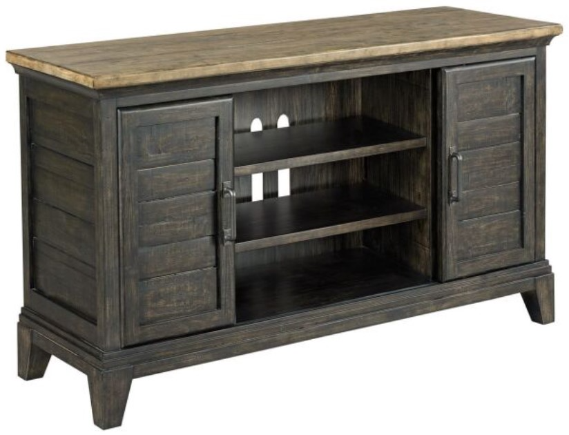 The Kincaid® Plank Road Charcoal 54" Arden Entertainment Console brings rustic charm and practical function to your living space. Crafted in a rich charcoal finish, it features two framed doors and three open shelves for easy storage and display. Perfect for media organization with a naturally warm, relaxed character.Read More