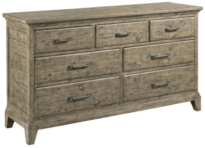 The Farmstead Dresser captures the essence of the Plank Road collection. Inspired by a period in American history when function helped define style, the dresser includes the uneven, solid pine boards on the top and framed end panels. It also features the elongated, custom designed hardware found throughout the collection.Read More