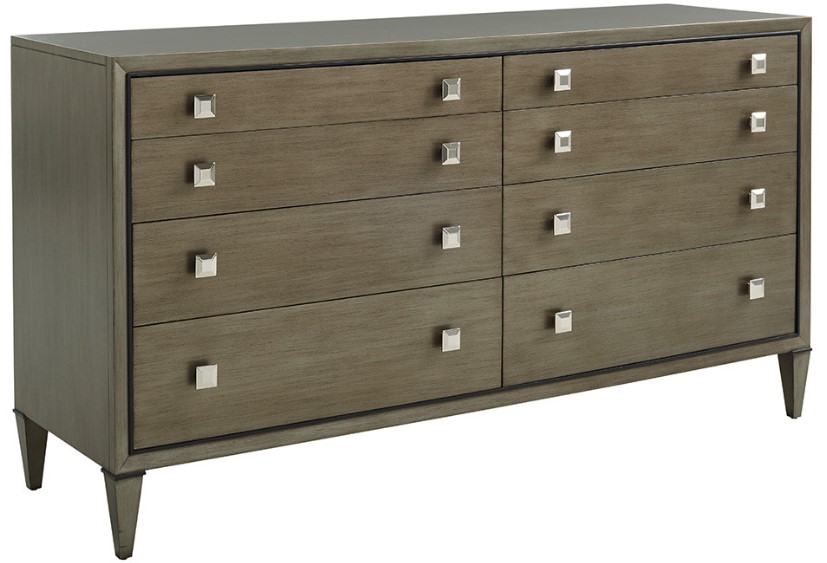 The eight full-extension self-closing drawers are ideal for clothing storage, and the elegant silver gray painted drawer interiors are a custom touch. The beveled face frame on the front of the piece is highlighted by a dark charcoal bead molding.Read More