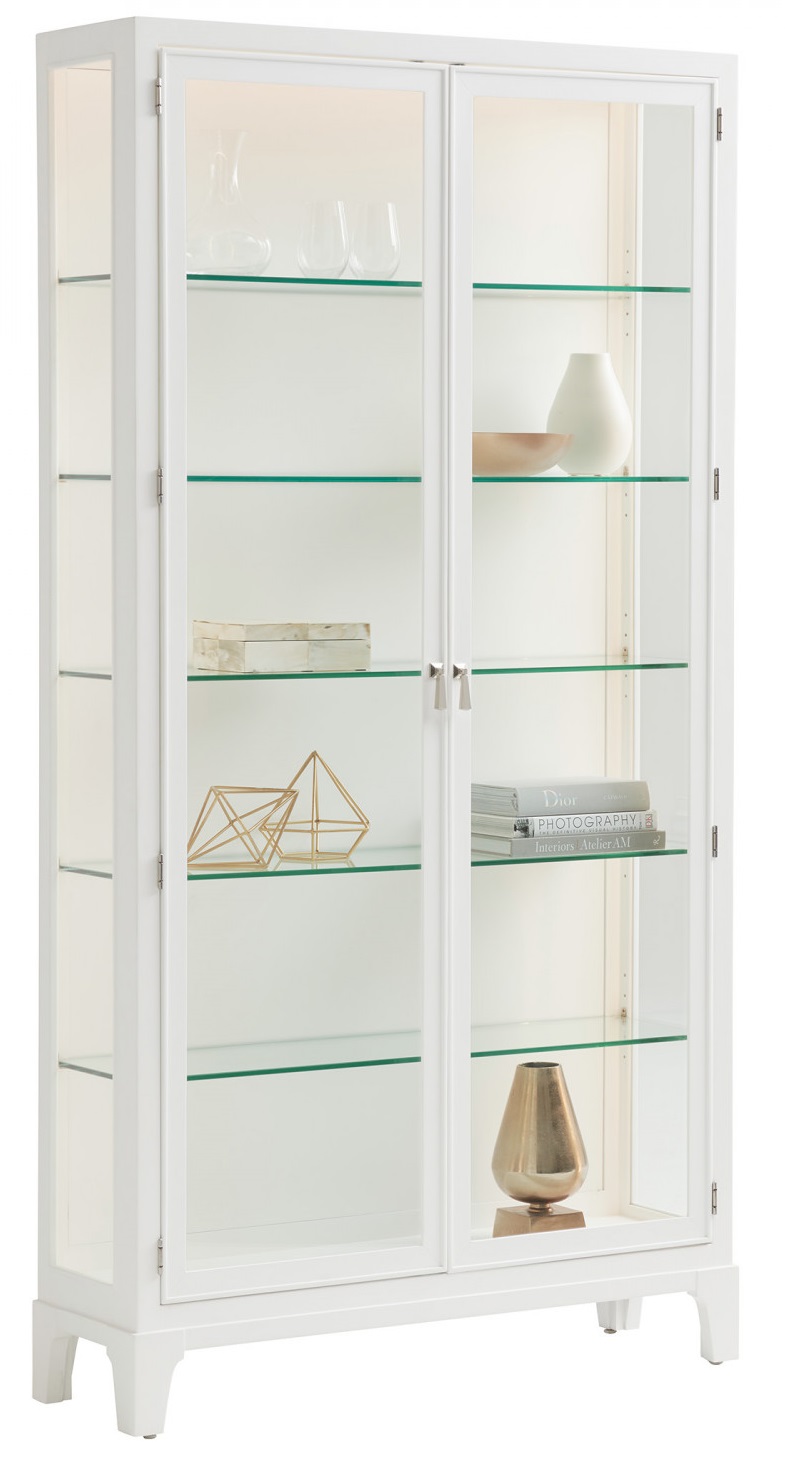 Scaled at 49-inches wide and 92-inches tall, the Lakeshore curio makes a significant design statement as a single unit or in pairs. The piece has tempered glass doors, glass end panels, and five adjustable tempered glass shelves.Read More