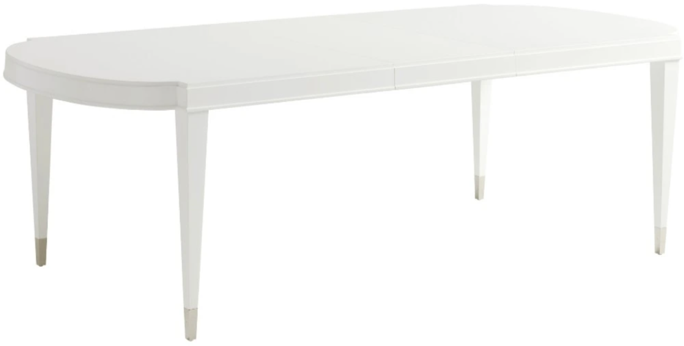 The refined design of the Vernon Hills dining table features gently rounded ends, elegantly tapered legs and polished nickel ferrules. Crafted with quality materials and finished in a crisp white, this table offers both style and durability.Read More