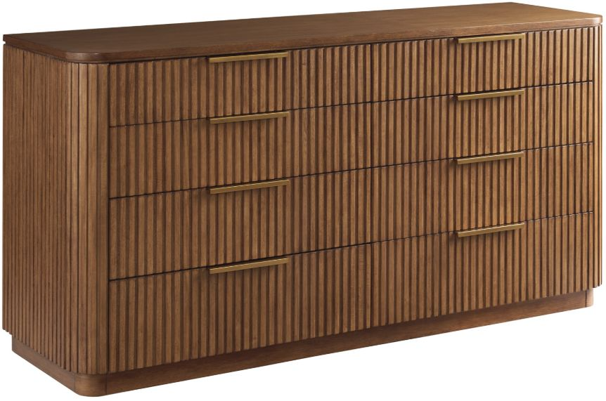 The Belcourt double dresser features a vertically fluted detailing and radius corners. Eight soft closing drawers offer generous storage, and the recessed plinth base gives the piece a floating appearance.Read More
