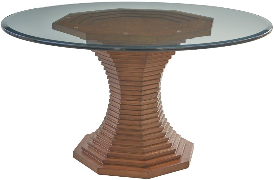 The La Costa Cabrillo Dining Table by Lexington Home blends coastal elegance with modern design. Featuring a round glass top and intricately crafted base, it offers timeless style, ideal for sophisticated dining spaces and relaxed, upscale interiors.Read More