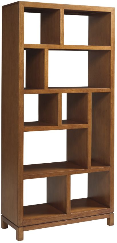 The Hermosa bookcase is 88-inches high and features four stationary shelves with partitions that create ten compartments. The three small shelves in the tall compartment on the left side are removable. The piece has a fully finished back, enabling it to be floated as a room divider.Read More
