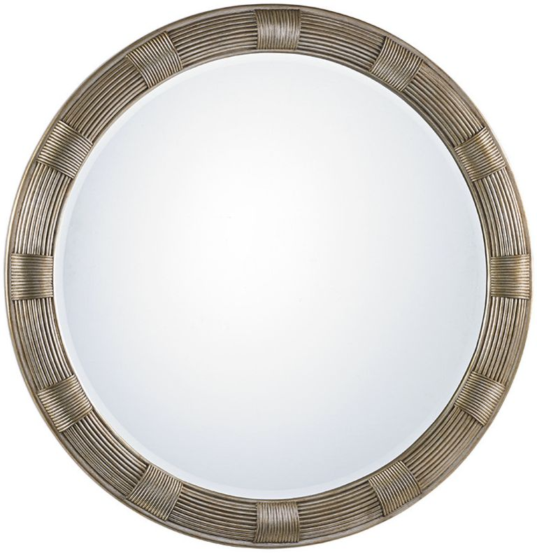 Meticulously crafted, this round mirror features a bundled reed design finished in silver leaf with hand-burnishing. The look pairs beautifully with the mocha finish, custom hardware and silver travertine tops.Read More