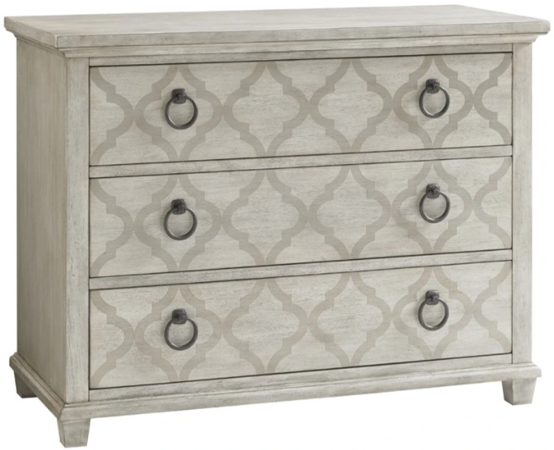 A signature piece of the collection, this hall chest showcases a decorative quatrefoil design silkscreened on the fronts of the three drawers. Paired with a mirror it is sure to be a conversation starter.Read More