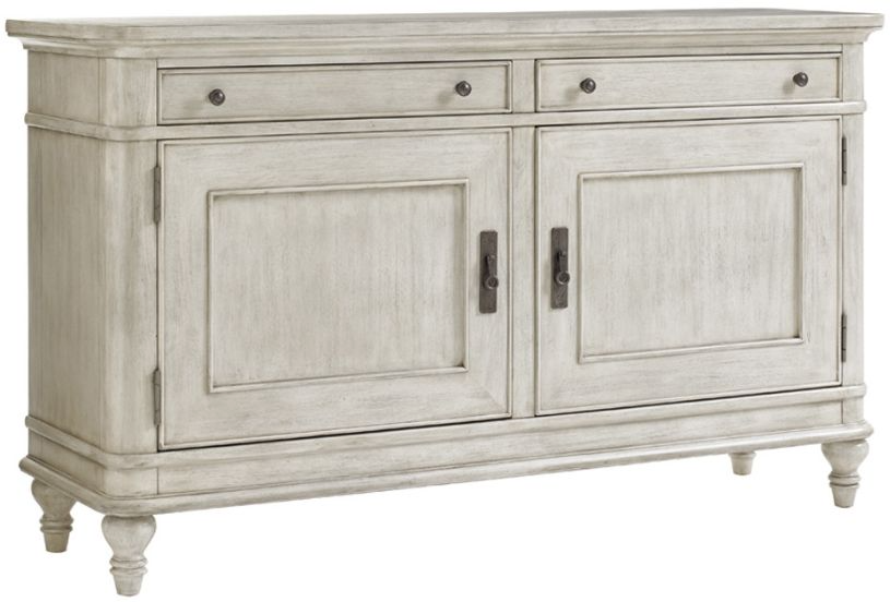 This buffet features casual transitional styling creating a sophisticated, yet understated look. It features generous storage with two full extension drawers and two doors with adjustable shelves behind each door. The left side facing drawer is felt lined and the right side facing drawer is felt lined and divided for silver.Read More