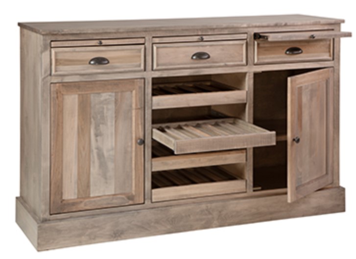 The Lexington Buffet from Mavin comes standard with a shelving that includes one adjustable wood shelf behind each door and four wine pullout drawer boxes that can each fit four bottles of wine.Read More