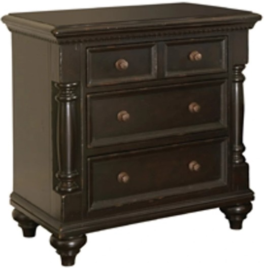 Capturing the Campaign spirit with carved edging along the top, lightly turned pilasters on each side, and three drawers. Ample drawer storage, and elegant hardware, providing both practicality and sophistication for any bedside or bedroom space.Read More