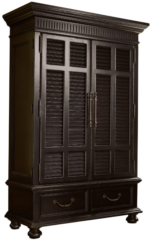 Paying tribute to British Colonial antiques with louvered doors and a distinctively distressed Tamarind finish. Wraparound doors open to reveal storage for clothing or media. Providing a functional and stylish solution for organizing clothes and accessories.Read More