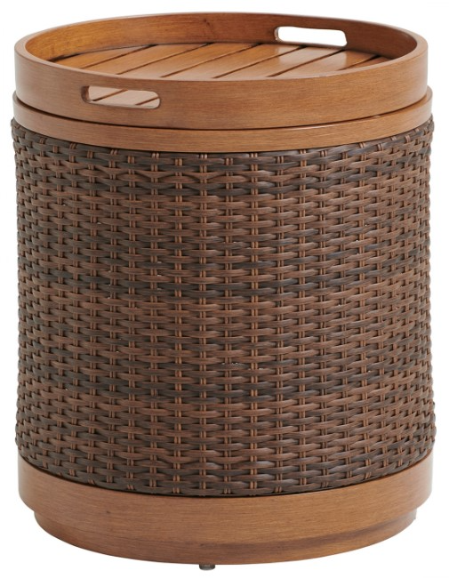 The round accent table features all-weather woven wicker around the perimeter and a removable tray with handles. This design offers functional storage in a profile that works equally well as an end table or chairside table.Read More