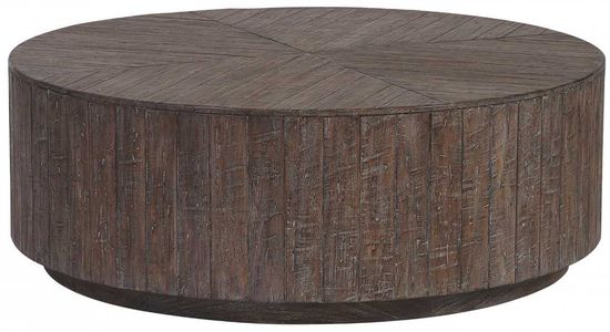 The 44-inch diameter round cocktail table is a statement piece in the collection. It features extra hand distressing on the teak surfaces and a contrasting dark mocha finish that gives it a rich, distinctive look.Read More