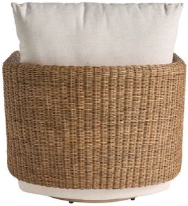 The Enzo swivel chair combines contemporary style with coastal charm, featuring a woven wicker frame paired with soft Nomad Snow fabric upholstery. Its smooth swivel base provides easy movement, making it a versatile and inviting seating option for living rooms, sunrooms, or relaxed entertaining spaces.Read More