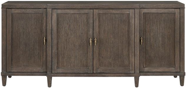 The cocoa credenza offers exceptional dining room storage with reeded door fronts that add textural dimension to clean aesthetic lines. This substantial piece features a felt-lined silverware tray, adjustable shelving, and integrated wire management with a power supply bar for modern functionality.Read More